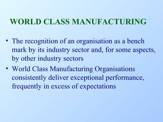 Manufacturing is credited with pioneer in concept of world-class manufacturing. 1 Presentation Design Company. World class manufacturing was introduced in.
